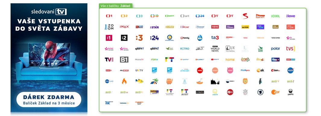 Kupón SledovaniTV Vám zadarmo aktivuje základný balíček s viac ako 105 kanálmi na 3 mesiace ZADARMO.