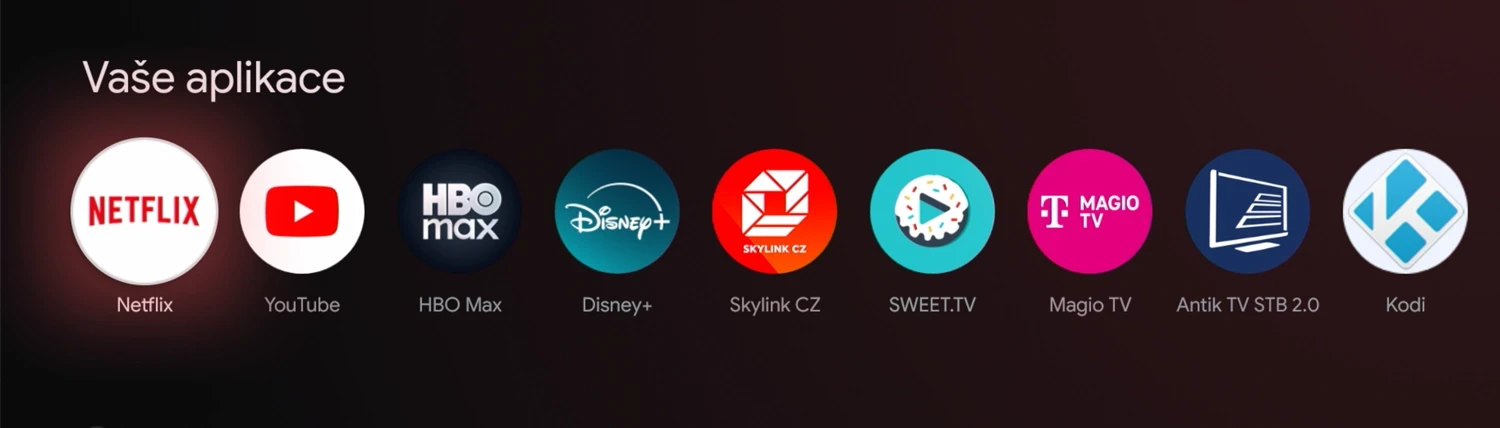 Netflix, Disney+, Prime Video, YouTube, Spotify a stovky dalších aplikací.
