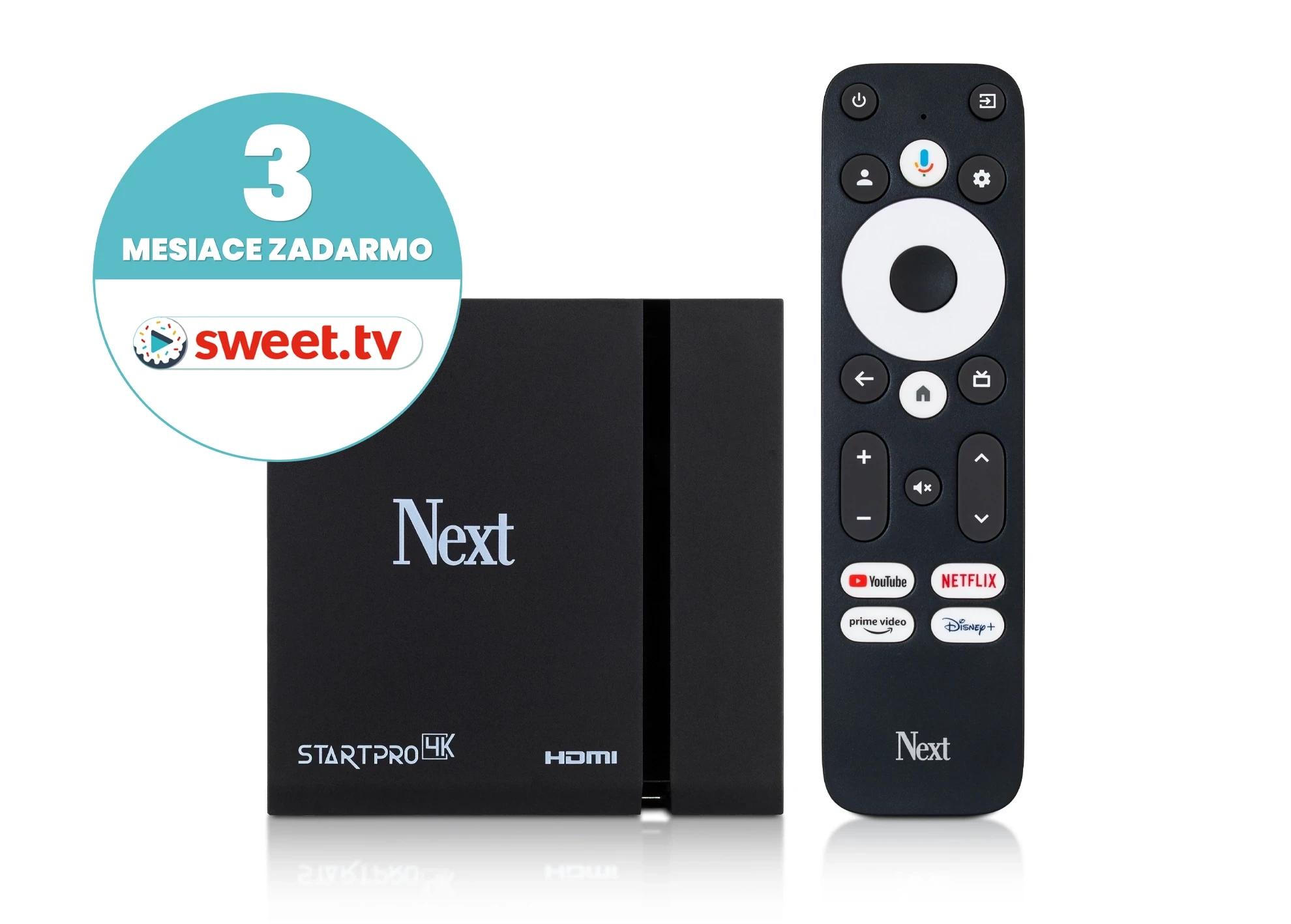 Google TV Next Start Pro 4K je moderné a výkonné multimediálne centrum, ktoré premení každý televízor na inteligentné centrum zábavy s funkciami Smart televízora. Vďaka systému Google TV máte všetky obľúbené aplikácie a streamovacie služby na jednom mieste – Netflix, YouTube, Disney+, HBO Max a mnoho ďalších. Rozhranie je intuitívne a prispôsobuje sa vašim zvyklostiam, takže odporúča presne ten obsah, ktorý vás baví.