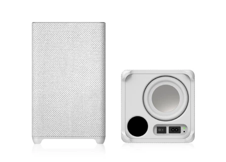 Homatics Sound&Sound 2.1 vám poskytne skutočný bezdrôtový stereo zvuk (True Wireless Stereo sound) s 2 reproduktormi umiestnenými na ľavej a pravej strane zariadenia (TV, monitor a pod.) a 1 subwooferom pre extra basy.